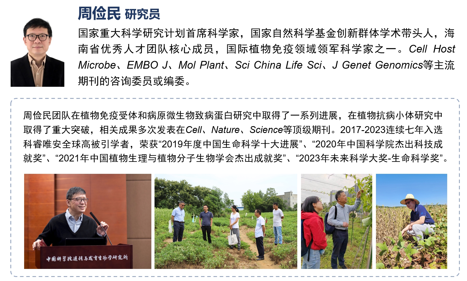 简介:国家重大科学研究计划首席科学家,国家自然科学基金创新群体学术带头人,海南省优秀人才团队核心成员,国际植物免疫领域领军科学家之一。Cell Host Microbe、EMBO J、Mol Plant、Sci China Life Sci、J Genet Genomics等主流期刊的咨询委员或编委。